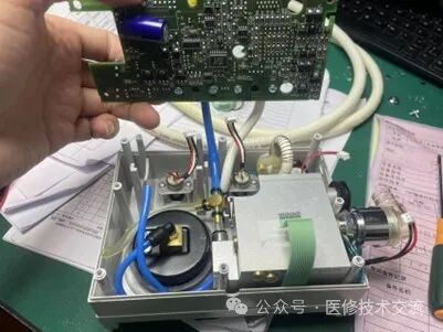 首先检查故障,发现通电通气正常,没有任何报错,但设备没能启动呼吸,不能出排气。