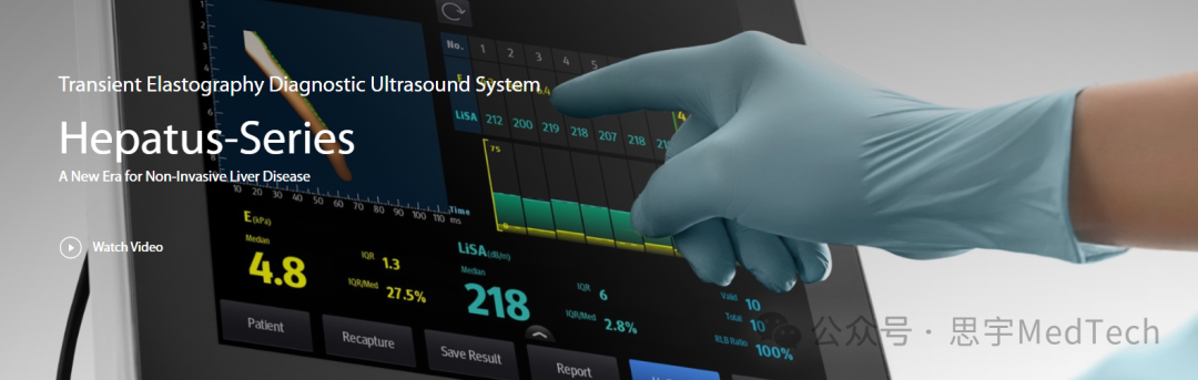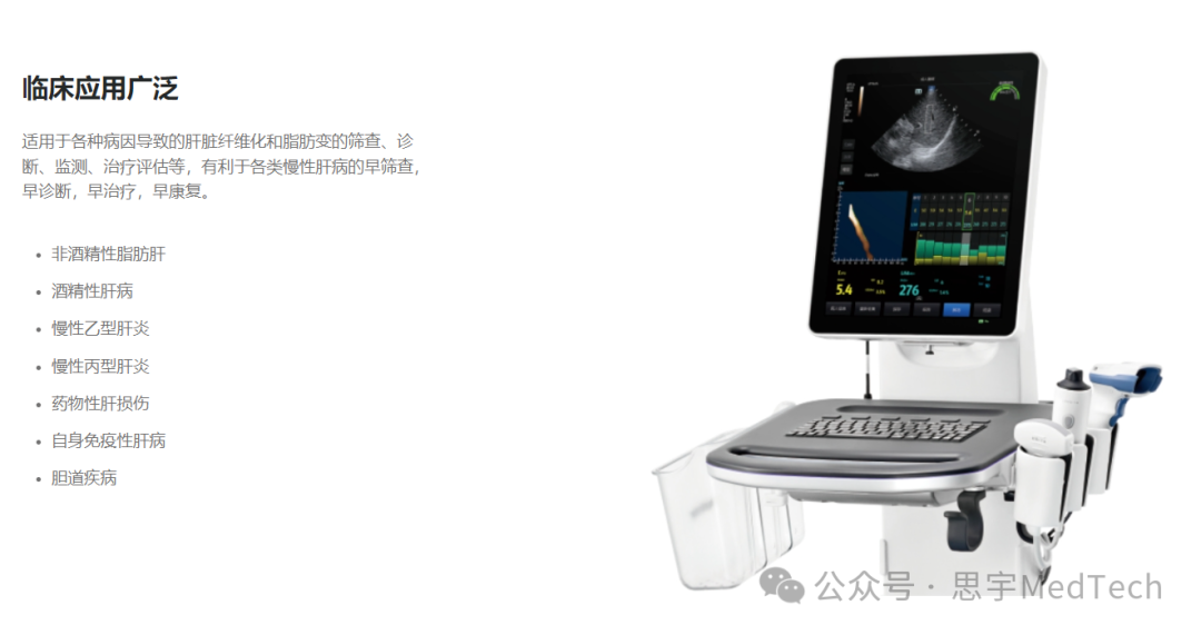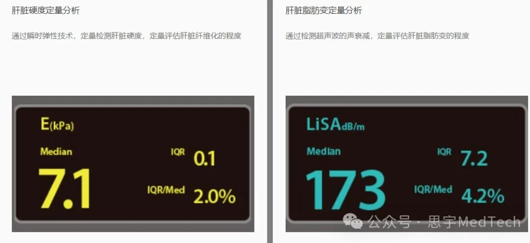 该产品采用迈瑞创新的ViTE可视化瞬时弹性技术,在全程实时二维超声的可视引导下,进行肝脏纤维化和肝脏脂肪变的定量检测评估;通过检测超声波的声衰减,定量评估肝脏脂肪变的程度。