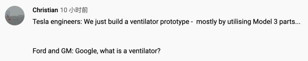 不过也需要说明,马斯克和特斯拉,并非“凭空”能搞呼吸机。特斯拉也并非是唯一一家转型制造呼吸机的厂商。在特朗普宣布启用《国防工业生产法》后,福特和通用等汽车厂商也都在利用所长生产呼吸机等医疗设备。