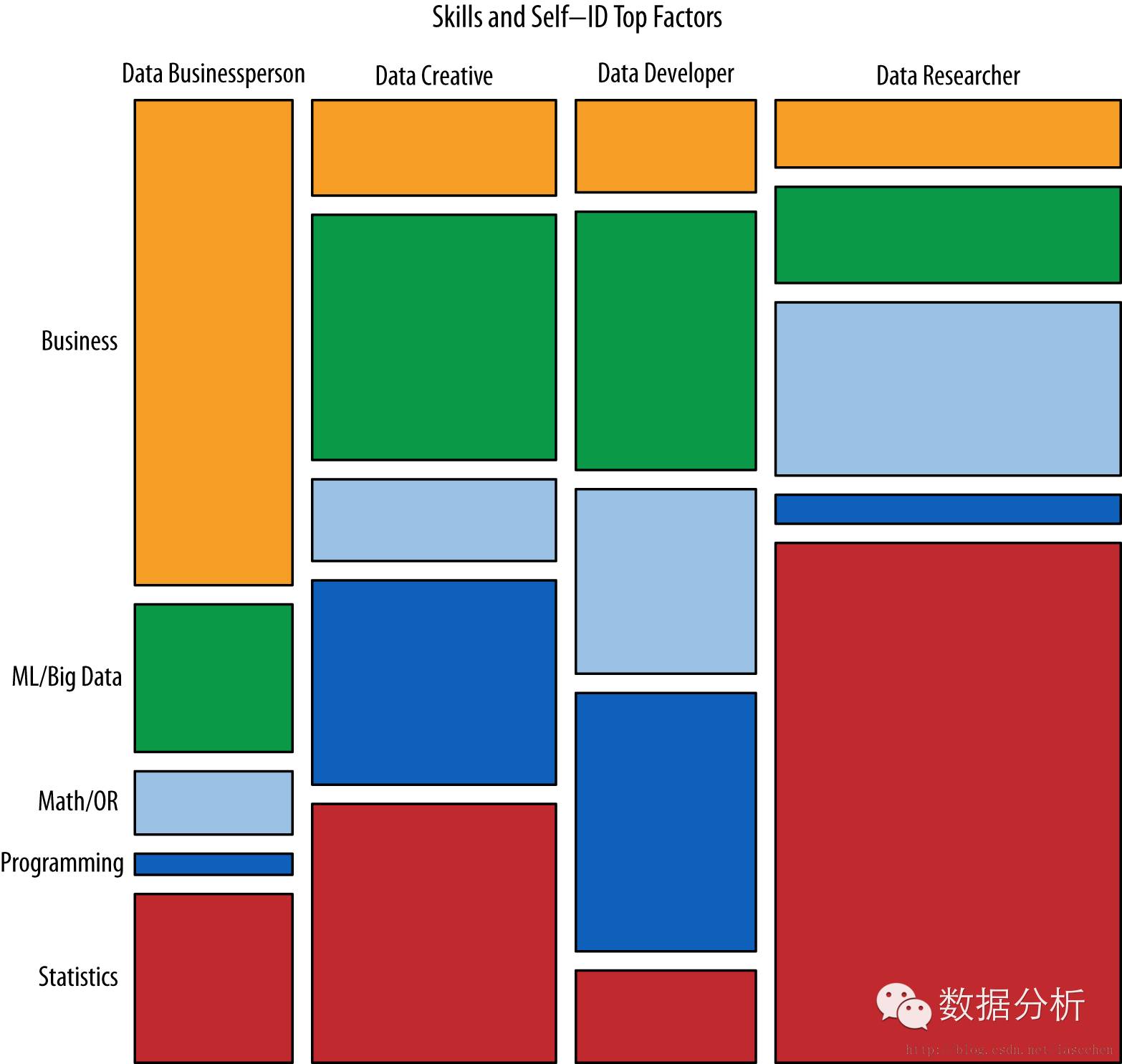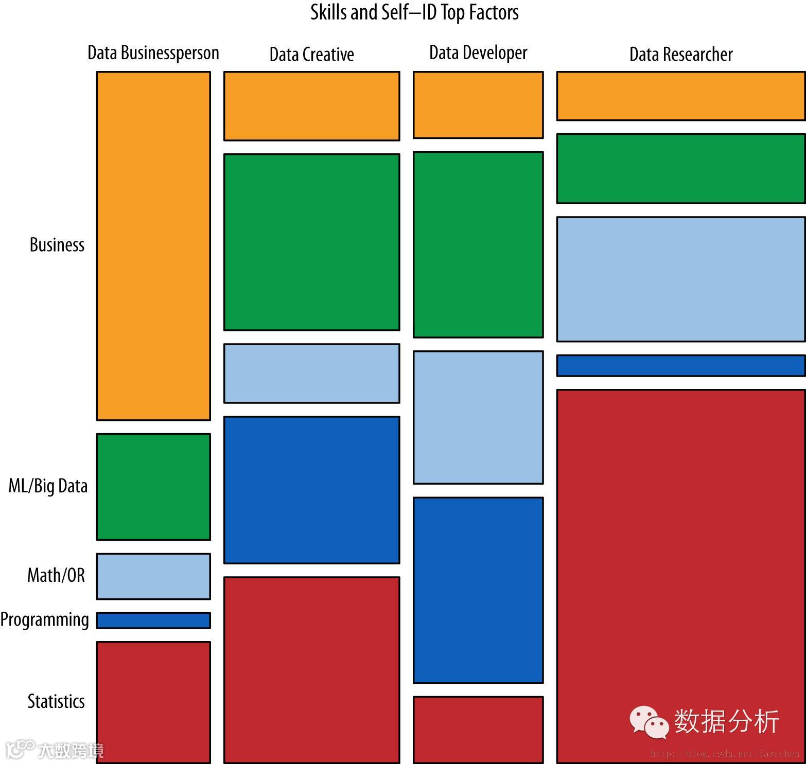 根据受访者的自我认知和技能排序,可以识别出不同类型的数据科学家所需要的技能。