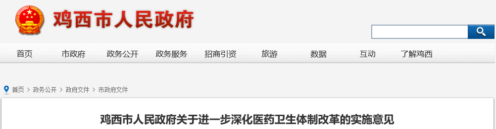 11月15日,鸡西市人民政府发布了《关于进一步深化医药卫生体制改革的实施意见》(以下简称《意见》)。