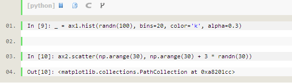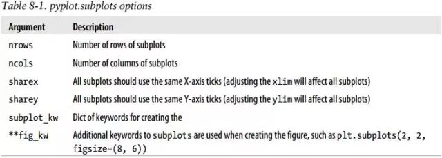 所有这些方法都是对当前或最近创建的AxesSubplot起作用的。它们各自对应subplot对象上的两个方法,以xlim为例,就是ax.get_xlim和ax.set_xlim。我更喜欢使用subplot的实例方法,当然你完全可以选择自己觉得方便的那个。