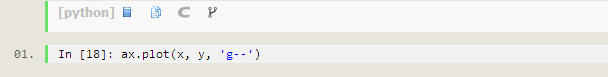matplotlib的plot函数接受一组X和Y坐标,还可以接受一个表示颜色和线型的字符串缩写。例如,要根据x和y绘制绿色虚线,你可以执行如下代码: