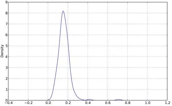 In [73]: tips[‘tip_pct‘].plot(kind=‘kde‘)