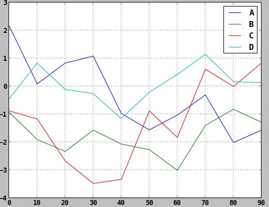 DataFrame的plot方法会在一个subplot中为各列绘制一条线,并自动创建图例,如下所示: