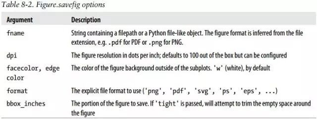 这对在Web上提供动态生成的图片是很实用的。Figure.savefig方法的参数及说明如下所示: