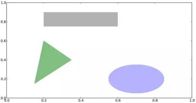 图像的绘制要麻烦一些。matplotlib有一些表示常见图形的对象。这些对象被称为块(patch)。其中有些可以在matplotlib.pyplot中找到(如Rectangle和Circle),但完整集合位于matplotlib.patches。