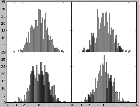 这条代码的意思是:图像应该是22的,且当前选中的是4个subplot中的第一个(编号从1开始)。如果再把后面两个subplot也创建出来,最终得到的图像如下所示: