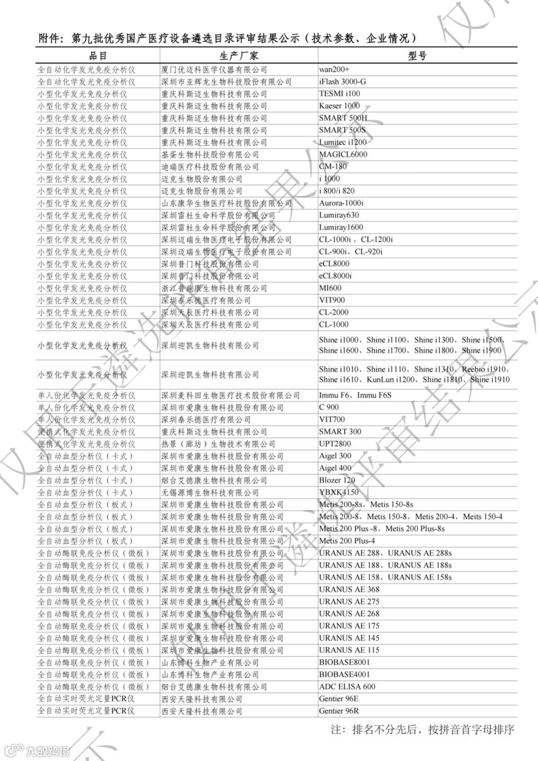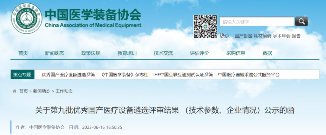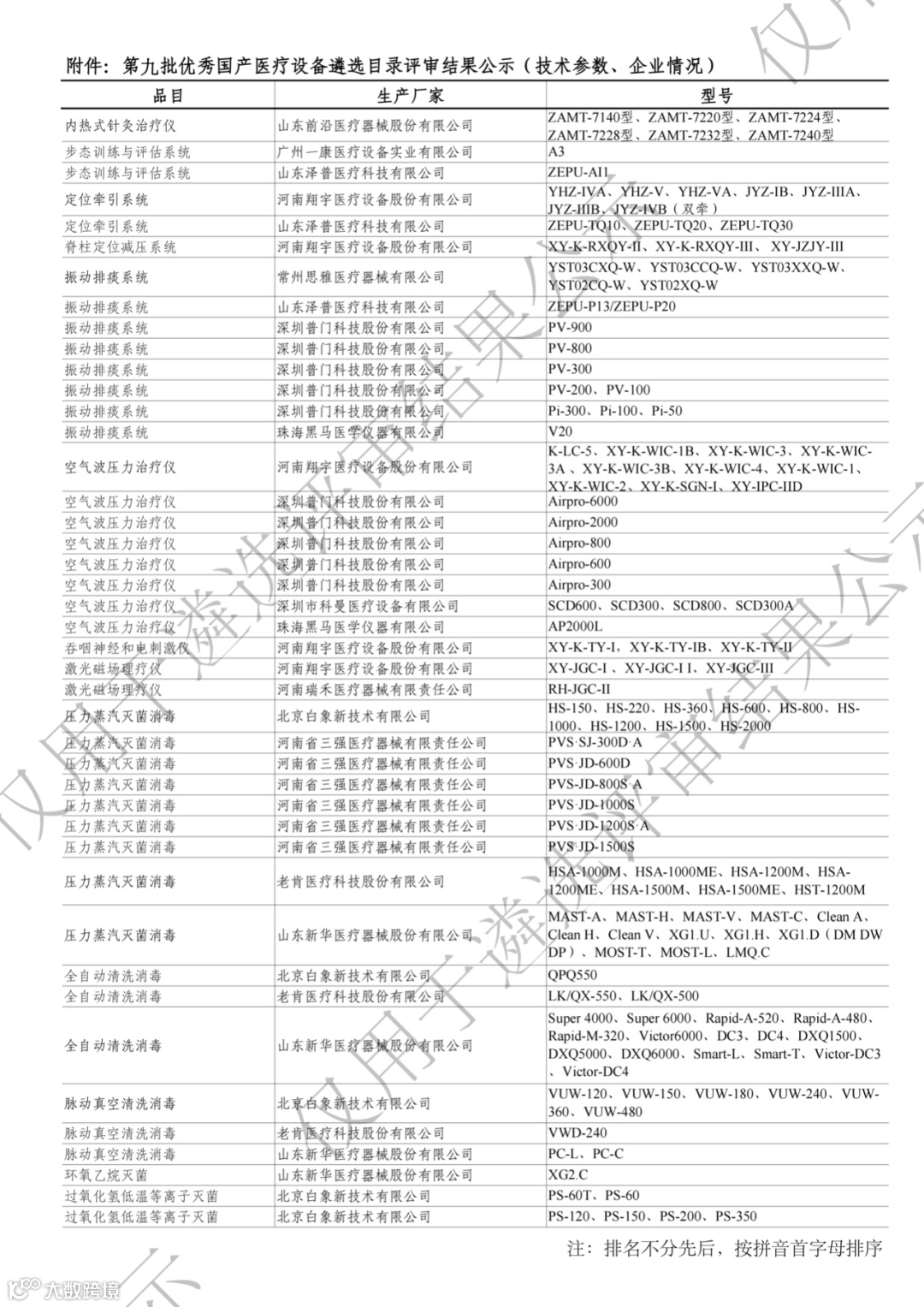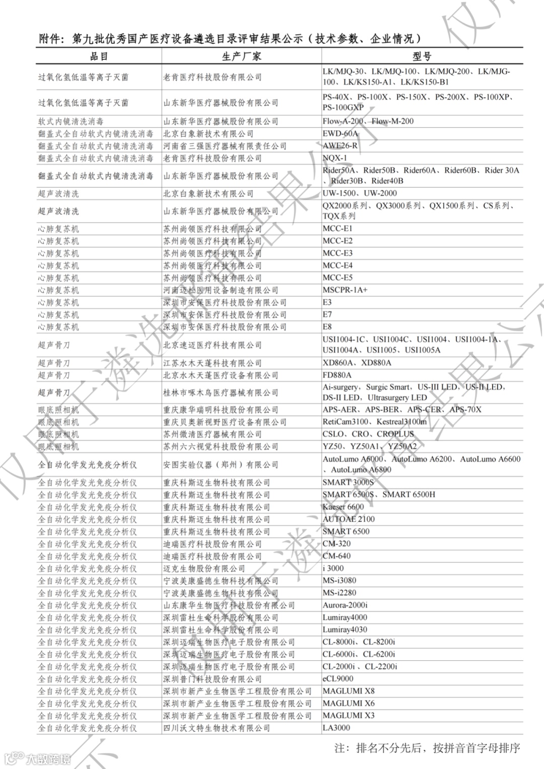根据公布的评审结果,迈瑞、联影、东软、开立、宝莱特、理邦、乐普、万东等国内知名械企多款设备入选第九批优秀国产医疗设备产品目录。