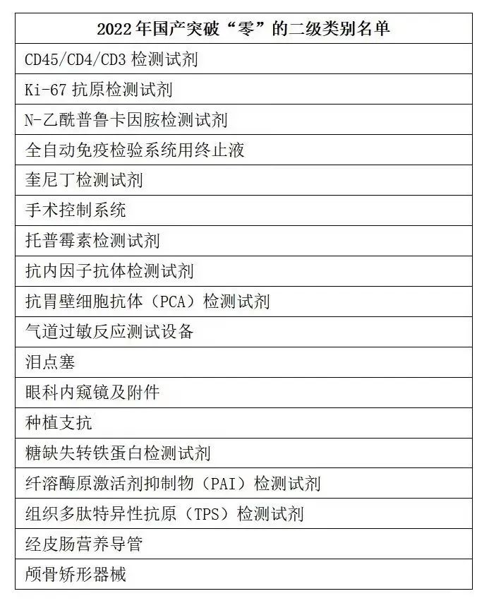 从具体领域来看,我国共有18个二级类别的产品在2022年获得了“零”的突破,其中有超过60%的“零”突破主要集中在体外诊断领域。