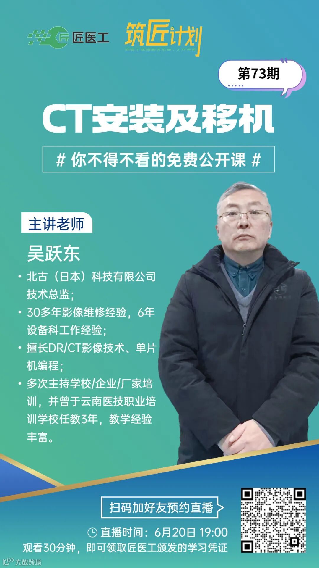 想要系统学习CT设备的安装及移机操作?锁定匠医工直播间,6月20日为你免费开课!
