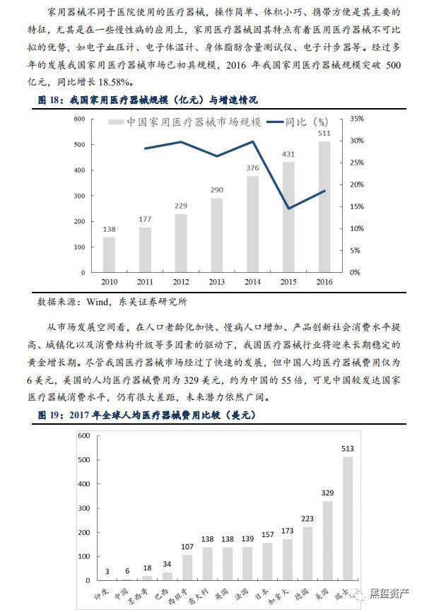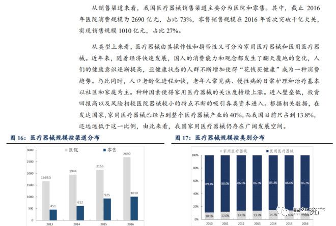 基于未来我国老龄化的日趋加重且不可逆转,我国医药医疗器械的未来也必将犹如过去曾高速发展的房地产,家电食品饮料大消费行业一样无限光明,这块也将是我投资之路上研究的重中之重。医药行业大的范围很广,今天要聊的是医疗器械下面的家用医疗器械这个细分领域。