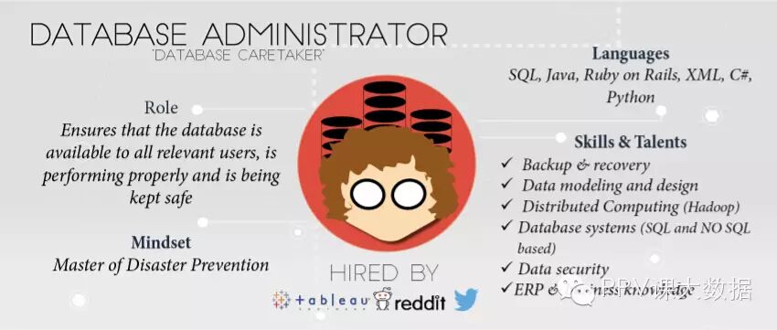 最主要分为以下几个职位:数据科学家、数据分析师、数据架构师、数据工程师、统计学家、数据库管理员、业务数据分析师、数据产品经理。下面通过信息图区分每个职位的角色介绍、必备语言技能。