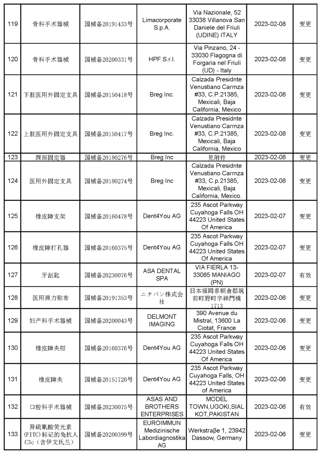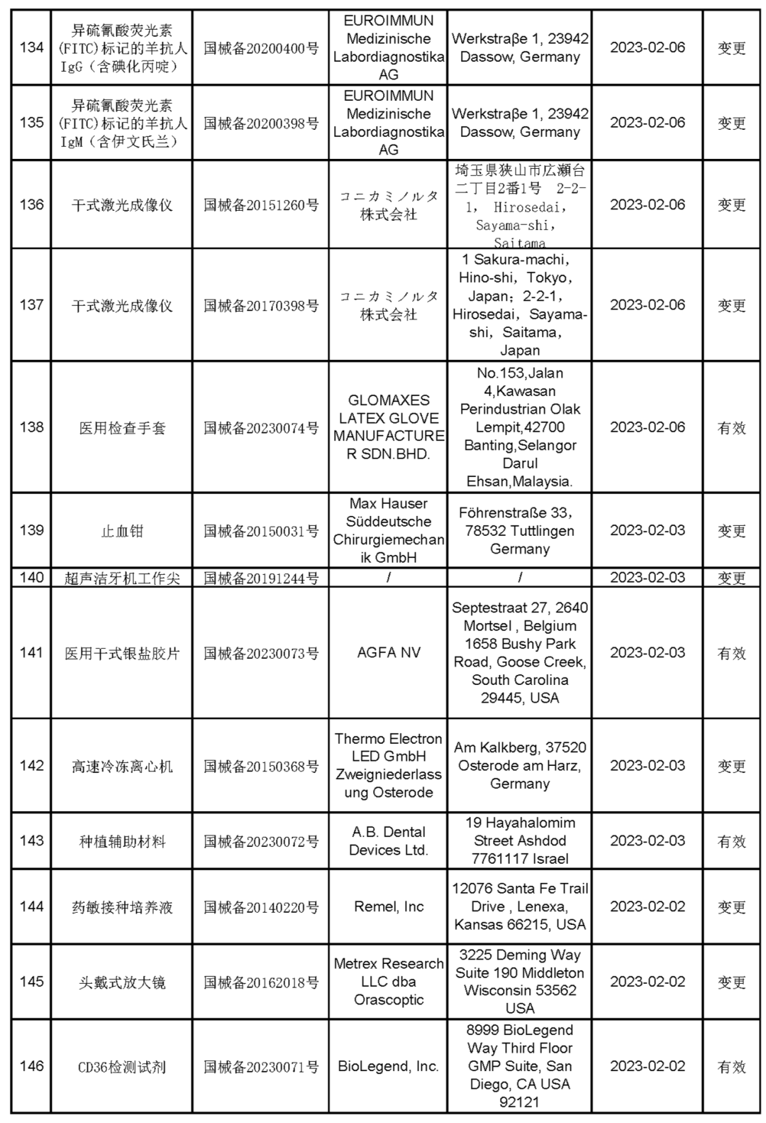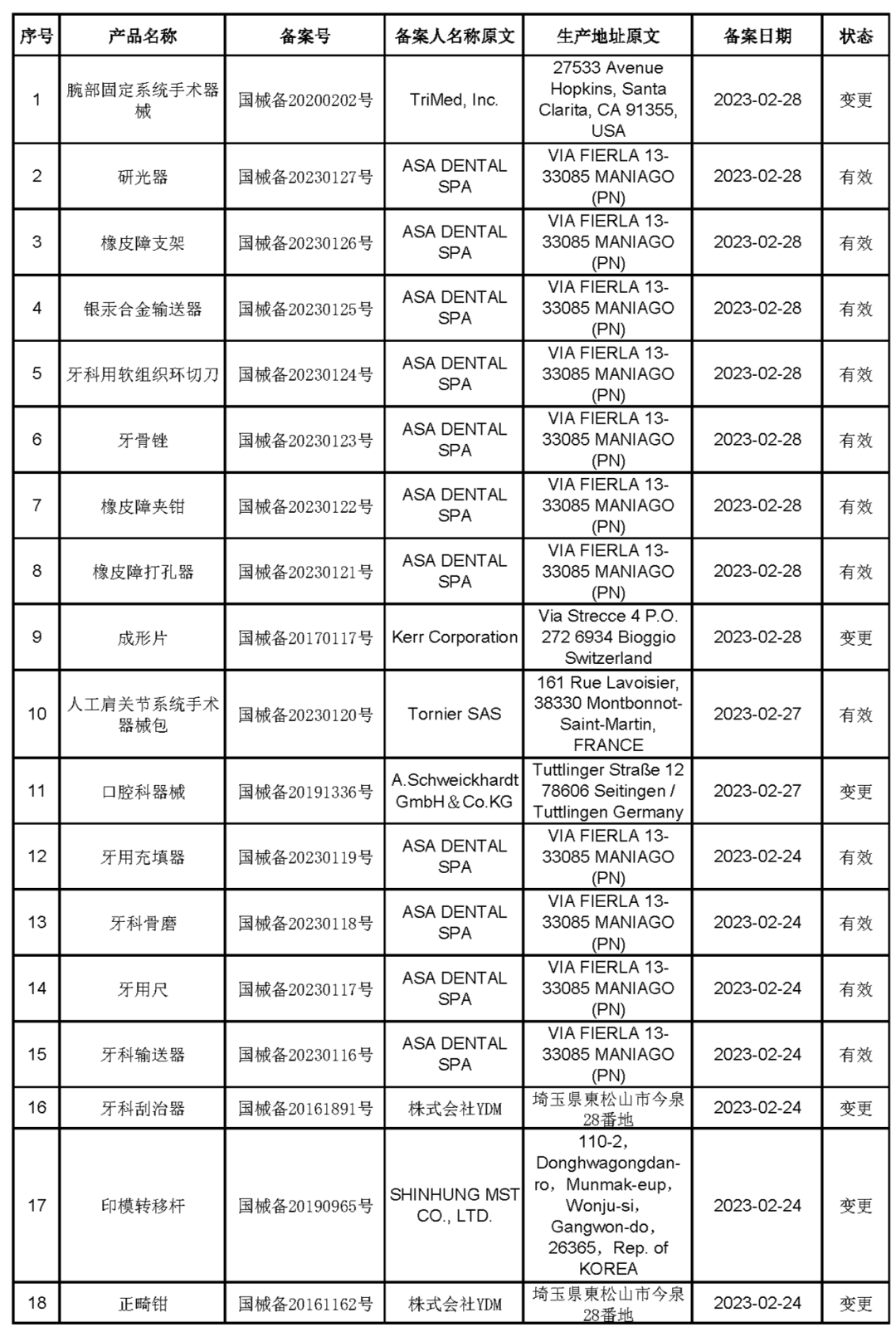 2023年2月进口第一类医疗器械产品备案信息