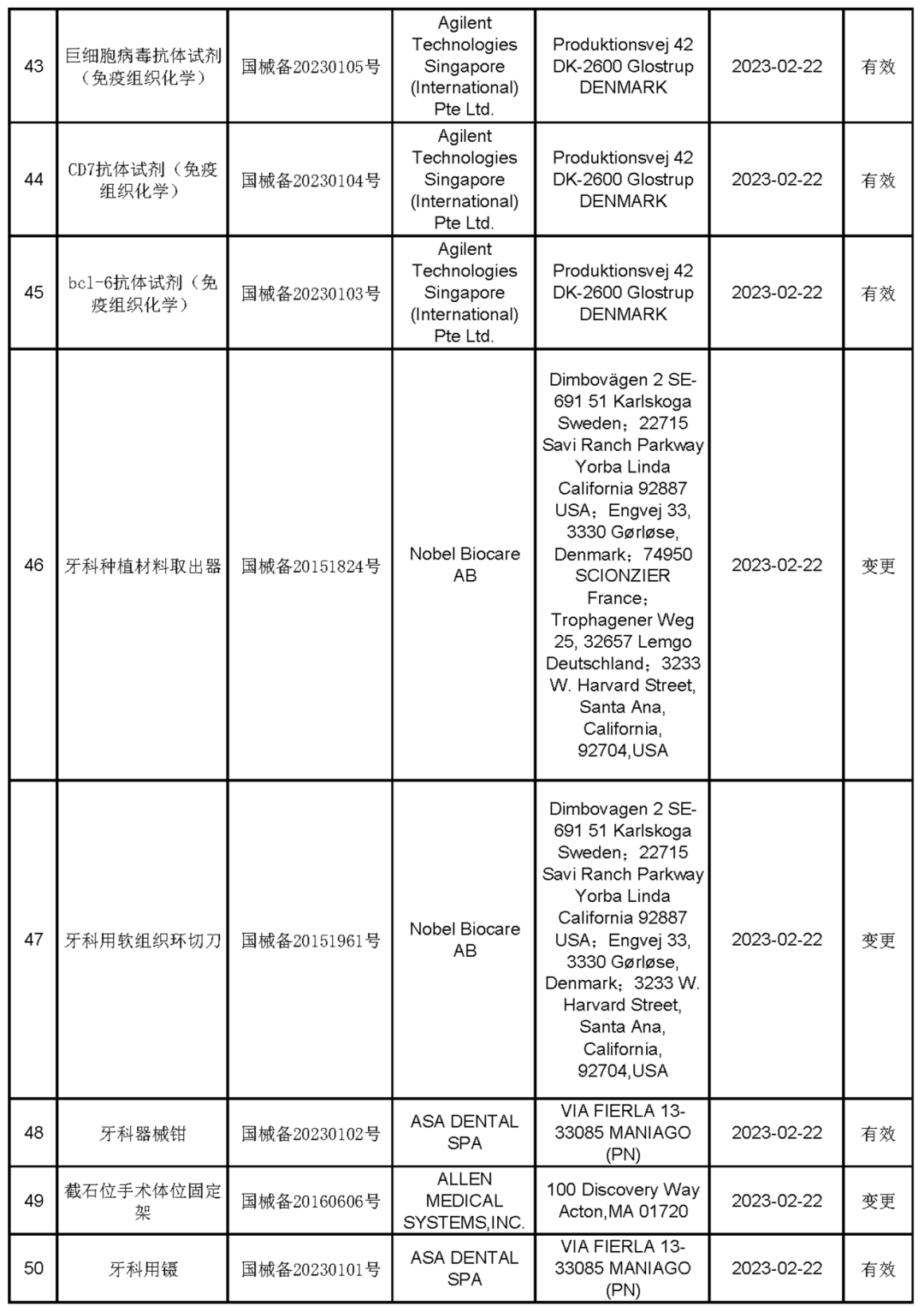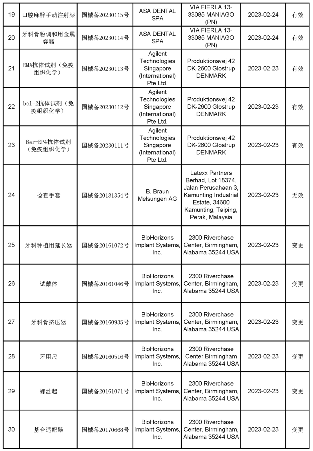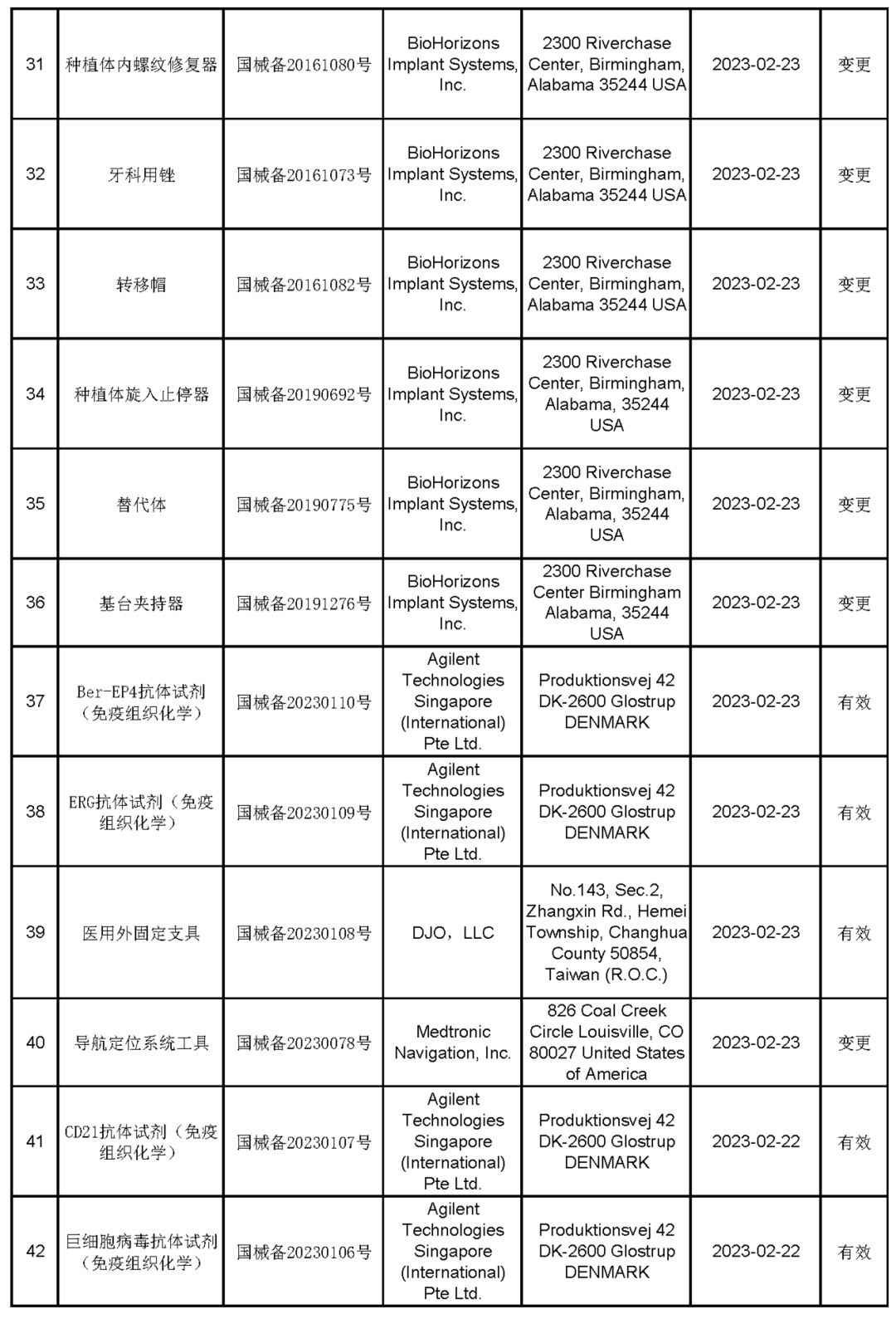 2023年2月进口第一类医疗器械产品备案信息