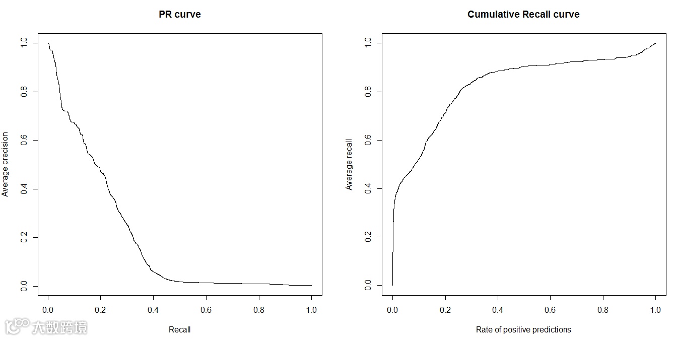 提升图:x轴模型预测阳性的概率;y轴是召回率比上阳性预测率的商;同时还有累计召回度图形,该模型曲线余越靠近上方,模型越好;此外,考虑模型排名前面可能包含未标记的样本,我们要检验排序质量的另外方法就是计算评估样本单位价格和相应产品的标准价格聚类,衡量异常值排名质量。