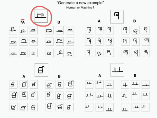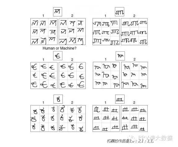 与此同时,人类被试也被要求做同样的事情。最后,研究者要求一组人类裁判(来自亚马逊土耳其机器人,Amazon Mechanical Turk)分辨出哪些字符是机器写的,哪些是人类写的。结果,裁判的正确率仅为52%,和随机的结果差不多。于是,机器通过了所谓的视觉图灵测试。
