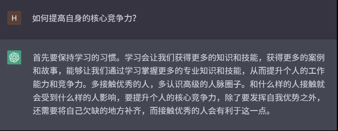 从以上的提问中可以感知到ChatGPT确实很强,可以帮助我们解决一些问题并提供有价值的观点。