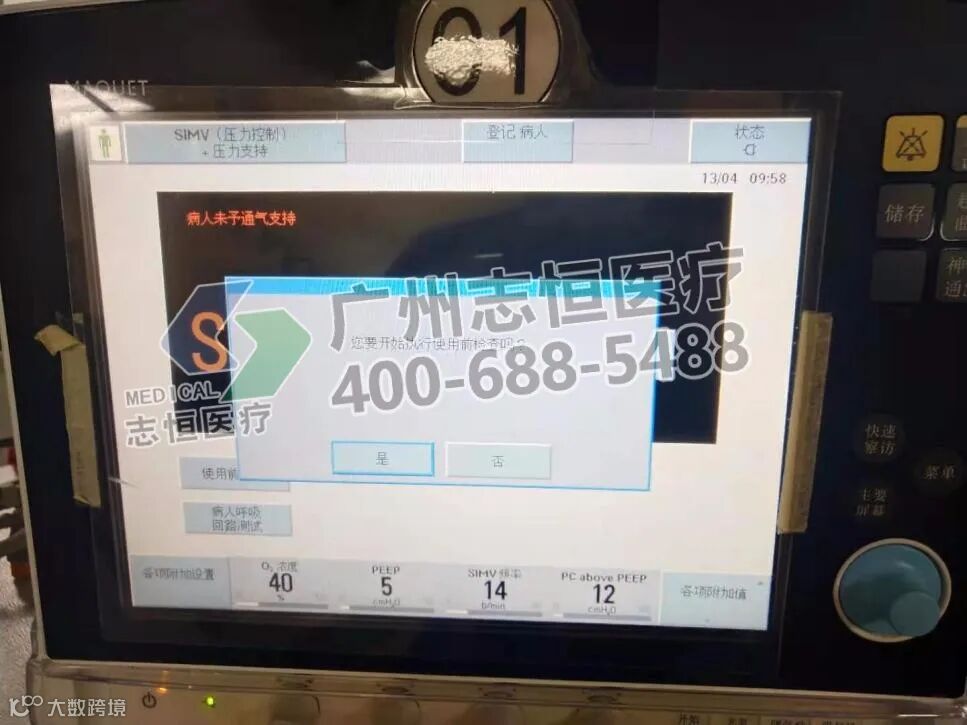 8、将机器原样装回去,拔掉的线都接好,插上电源和空、氧接头。找科室人员拿一套呼吸机管路。开机。机器出现下面的提示,点击“是”。机器开始自检。