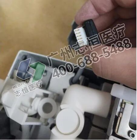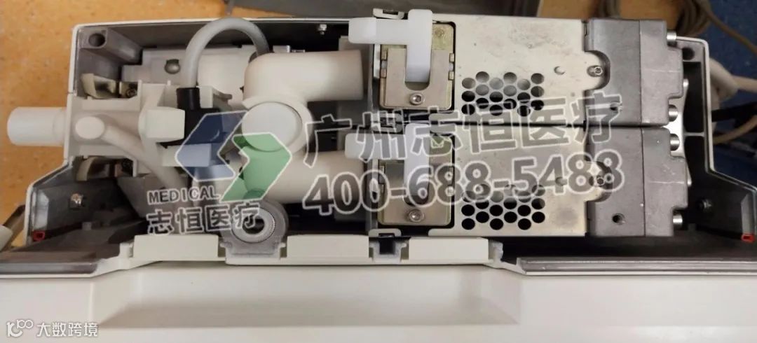 2、将呼吸机上面的视频线、传感器线和电源线拔掉、将空气接头和氧气接头拔掉,将主机从吊塔上面搬下来(如果是一体的机器则不需要)。