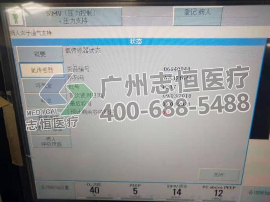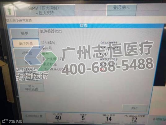 1、打开呼吸机查看氧传感器使用情况,确定氧传感器 是否寿命到期。