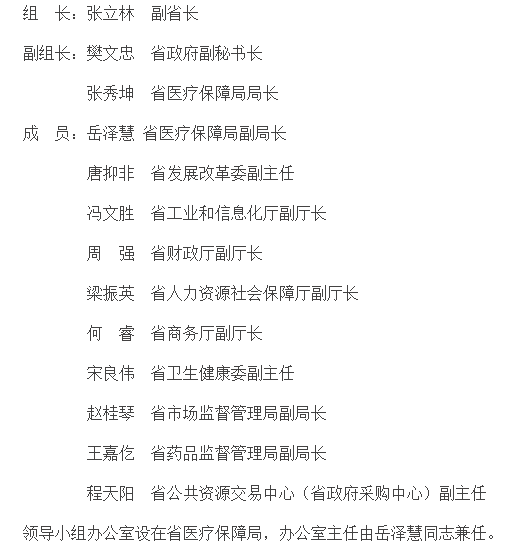 副省长任组长,医保局长、省政府副秘书长任副组长!又一省药品耗材集中采购领导小组成员名单曝光,全面推进医用耗材集中带量采购!