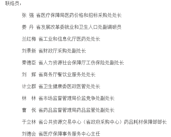 不仅如此,为了加强统筹协调,实行专职联络员工作制度。还由省医保局药价和招标采购处处长、省卫健委医政医管处处长等担任联络员负责部门间情况通报、信息交流和日常工作等事项的协调联系事宜。