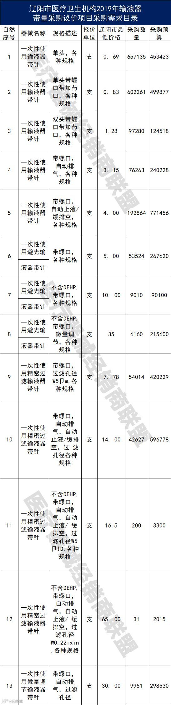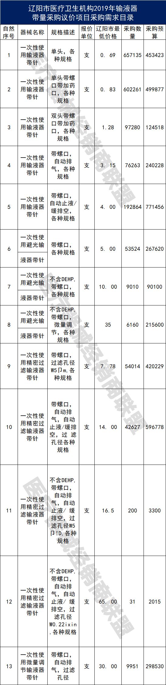 8月26日,辽宁省辽阳市医保局发布《辽阳市医疗卫生机构2019年输液器带量釆购议价项目》,此次带量采购由辽阳市医保局组织主导,辽阳市医保局局长担任带量采购小组组长,整个辽阳市十四家公立医院参与,其中包括一家三甲医院、一家三级医院,12家二甲医院!