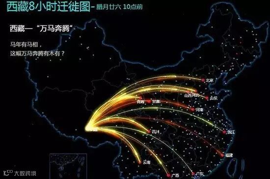 基于地图的一些可视化分析,比较热门,例如,春节人口迁徙图、微信活跃地图、人流热力图、拥堵数据的可视化、社会网络扩散可视化等。