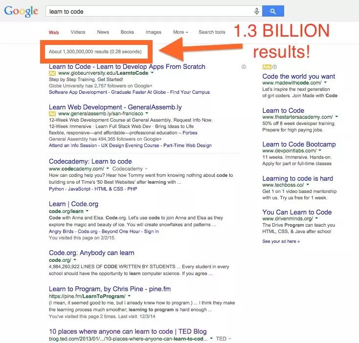 搜索“如何编程”,你会得到一大堆有用的工具、文章、视频以及自学教程。而且,老实说它们都很棒!从未有过如此多的方法指导人们学习编程。