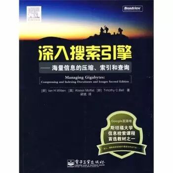 《深入搜索引擎–海量信息的压缩、索引和查询》:理论和实践并重,深入浅出地给出了海量信息数据处理的整套解决方案,包括压缩、索引和查询的方方面面。其最大的特色在于不仅仅满足信息检索理论学习的需要,更重要的是给出了实践中可能面对的各种问题及其解决方法。
