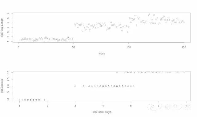 plot(x=iris$Petal.Length,y=iris$Species) #Multivariate Scatter Plot