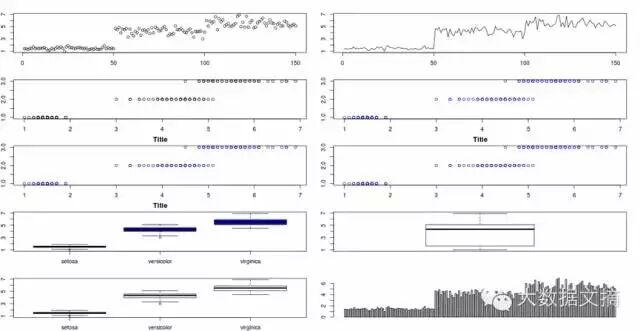 您可能已经注意到,在一些图表中,他们的标题已被截断,因为我把太多图表放在同一个屏幕上。要改变这一点,你只需要改变par函数的‘mfrow’参数。
