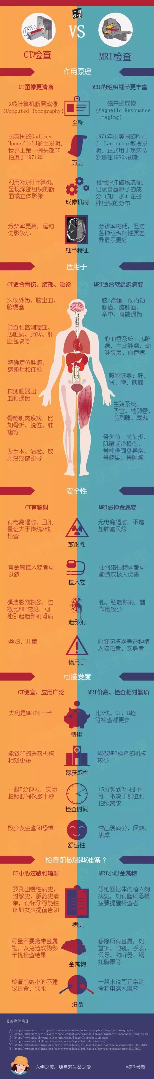 除了孕妇之外,CT任何人都可以做,而磁共振机器相当于一个巨大的磁铁,因此有心脏起搏器、体内有钢板或者其他金属材质异物的患者均不能行MRI检查。