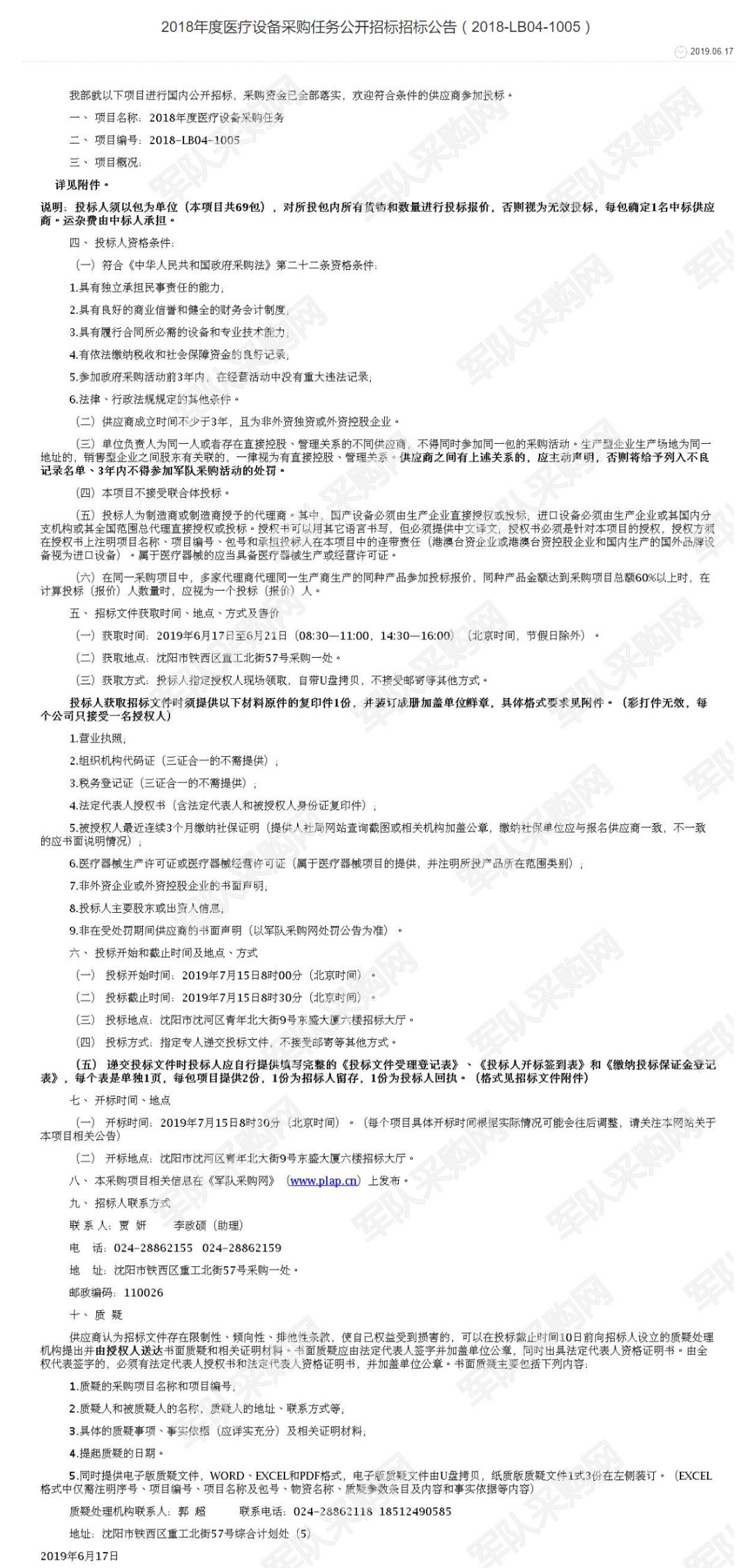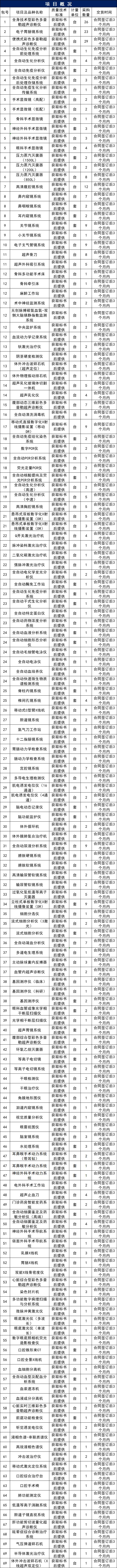 6月17日,军队采购网发布《2018年度医疗设备采购任务公开招标招标公告(2018-LB04-1005)》。共计招标采购451台医疗设备,分为69个包。其中1、2、3包采购数量最多,分别为26台彩超、23台电子肠胃镜、29台便携式彩超。