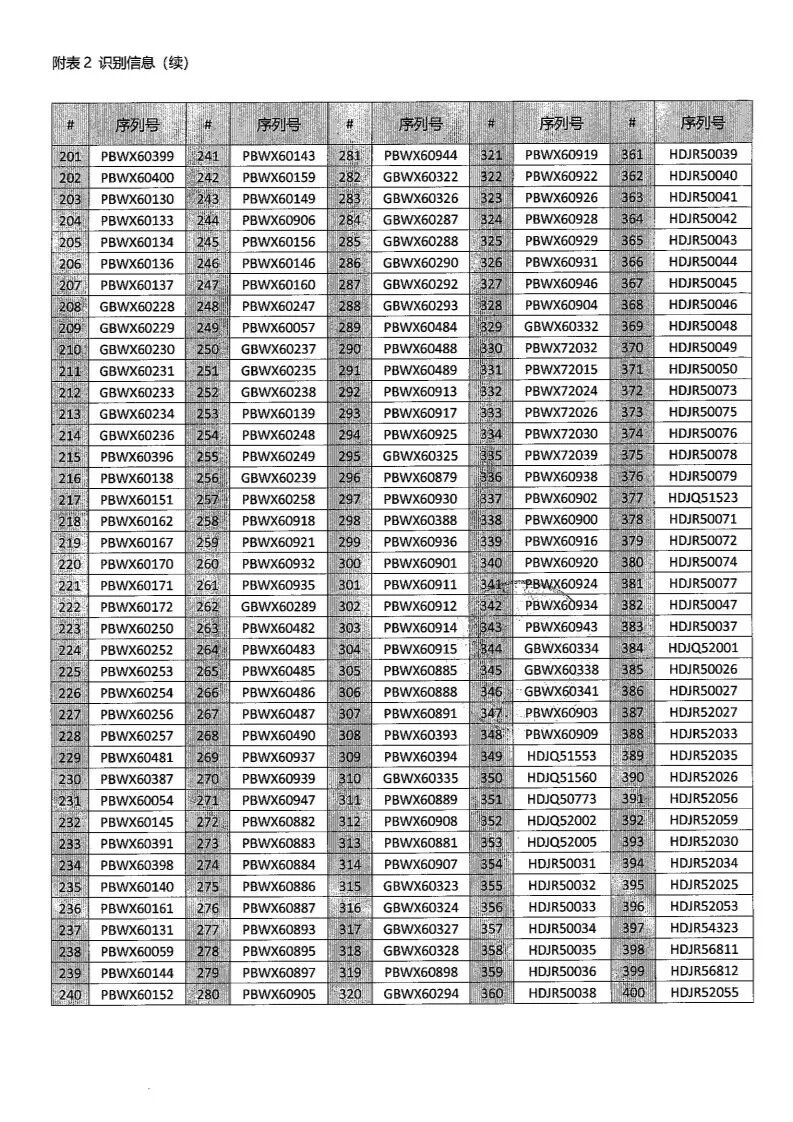 中国召回产品详情: