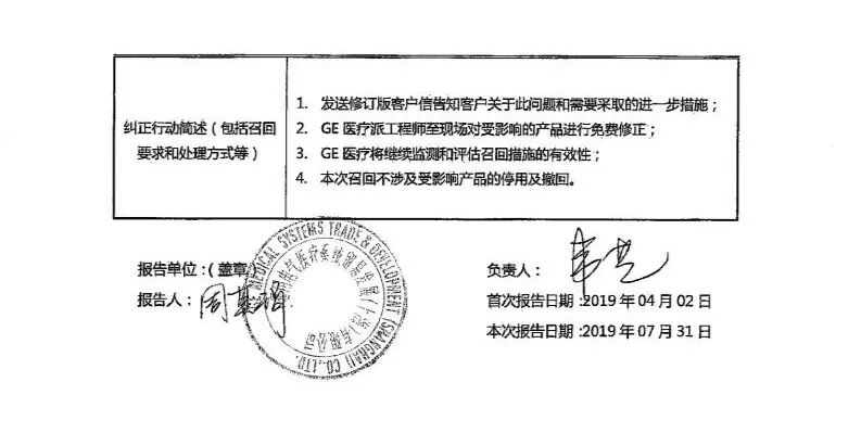 GE供货商,国内一级召回超1000台设备