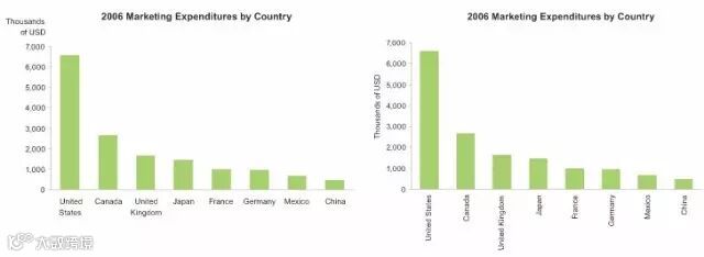 点评:一般来讲表述市场份额是100%,所以大家习惯用饼图表述,研究表明人们更习惯从条形图来比较大小,更醒目的看到差异!