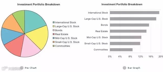 1、下面两个图形中,那个更容易表现Mid-Cap和Small-Cap的市场份额大小,饼图还是条形图?