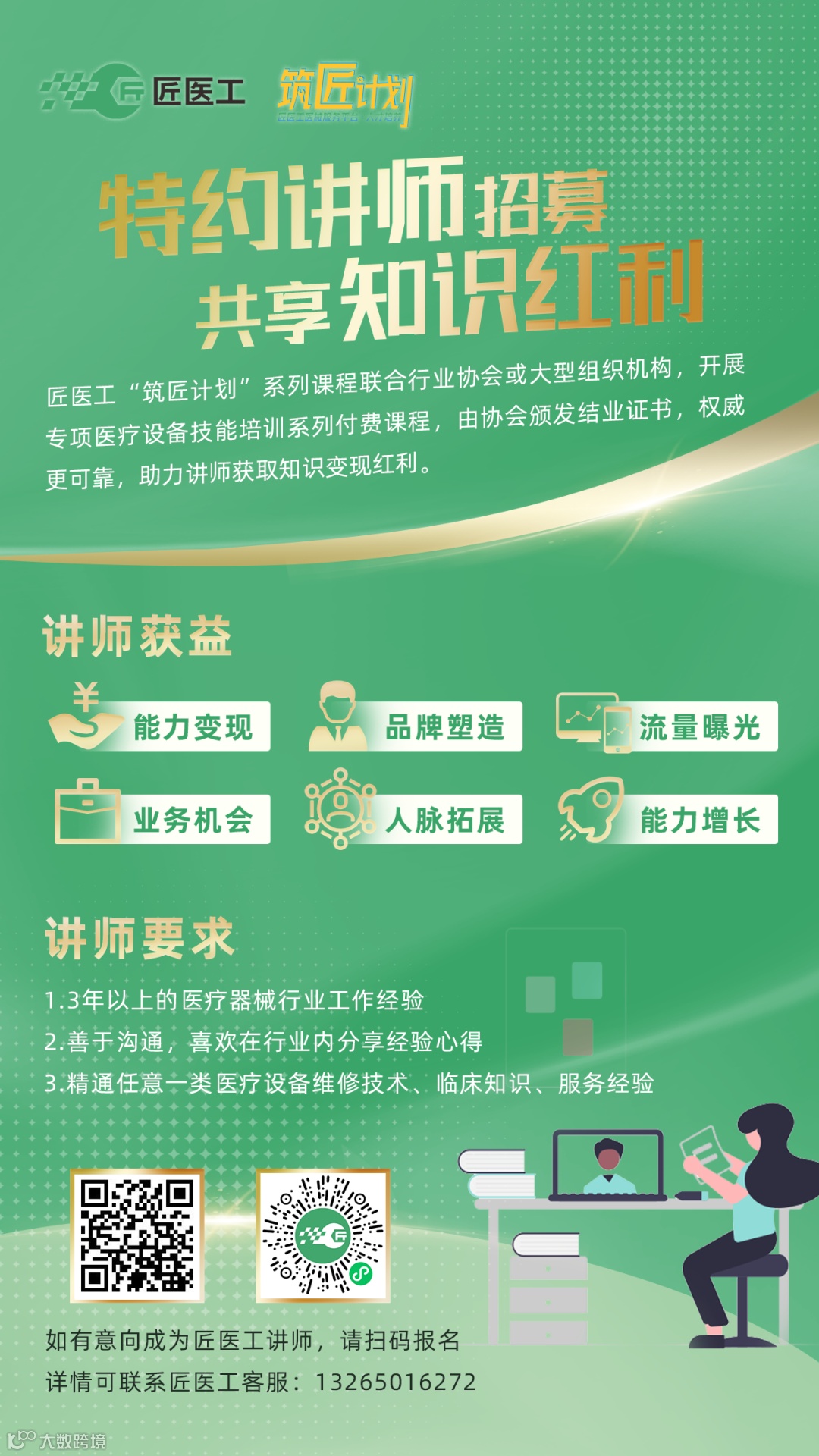为了帮助医械同行们更好地学习监护类知识,助力学员们快速提升自身的专业技能水平,匠医工服务平台现向全国各地的技术大咖发出真挚的邀请。