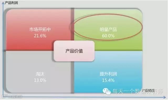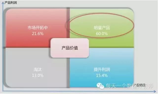 最简单的一种选择,是用产品的利润和销量进行组合。根据产品的销量和利润,很容易地把现有的产品划分到了四类里面。并且根据每类的特征,一个比较概括的下一步调整方向也呼之欲出了。