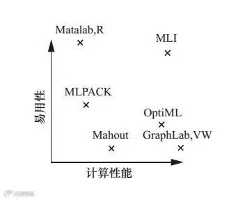 与此同时,著名的UC Berkeley AMPLab在研究基于Spark的机器学习库MLBase[9]时,从计算性能和系统易用性两个重要维度,考察了现有的大数据机器学习研究工作和系统,如图4所示。面向机器学习和数据分析时,目前已有的工作和系统,绝大多数都未能同时具备大规模分析处理能力和良好的系统易用性。