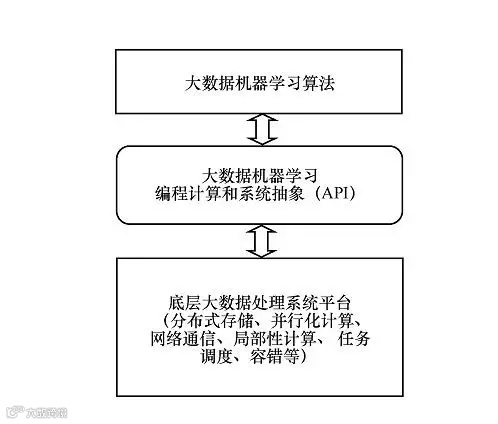 大数据机器学习,不仅是机器学习和算法设计问题,还是一个大规模系统问题。它既不是单纯的机器学习,也不是单纯的大数据处理技术所能解决的问题,而是一个同时涉及机器学习和大数据处理两个主要方面的交叉性研究课题。一方面,它仍然需要继续关注机器学习的方法和算法本身,即需要继续研究新的或改进的学习模型和学习方法,以不断提升分析预测结果的准确性;与此同时,由于数据规模巨大,大数据机器学习会使几乎所有的传统串行化机器学习算法难以在可接受的时间内完成计算,从而使得算法在实际应用场景中失效。因此,大数据机器学习在关注机器学习方法和算法研究的同时,还要关注如何结合分布式和并行化的大数据处理技术,以便在可接受的时间内完成计算。为了能有效完成大数据机器学习过程,需要研究并构建兼具机器学习和大规模分布并行计算处理能力的一体化系统。
