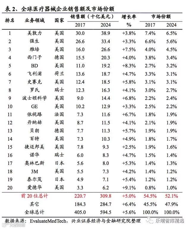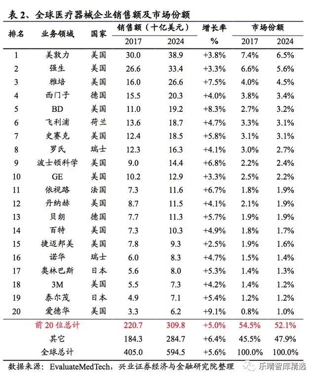 医疗器械行业属于全球范围内集中度较高的行业,且集中度不断提升。
