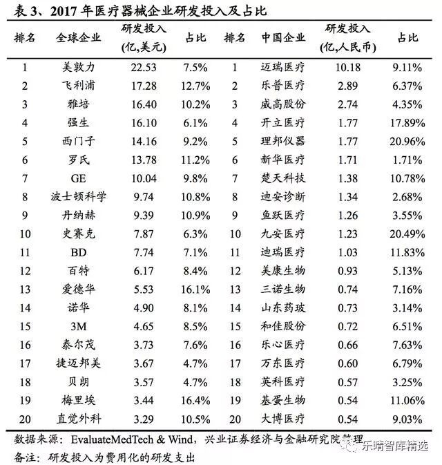 对比全球领先的医疗器械企业,美敦力2017年研发投入22.53亿美元,占当年销售额的7.5%;飞利浦2017年研发投入17.28亿美元,占当年销售额的12.7%;雅培2017年研发投入16.4亿美元,占当年销售额的10.2%。