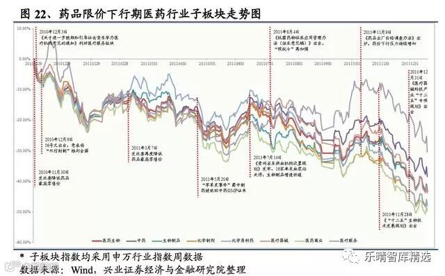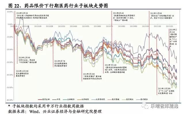 在政策层面,2010年11月,56号文出台,全国范围内推广双信封基药招采模式,并要求各地力争在年底前按照规定的采购办法完成一个采购周期的基药采购。前有安徽模式降价过半,后有江苏、黑龙江集采降价超六成,药价下行压力使医药指数持续下跌。