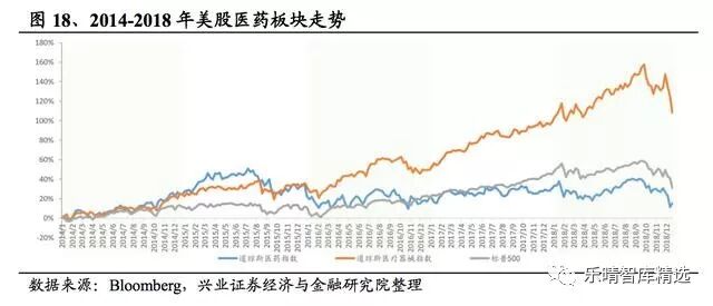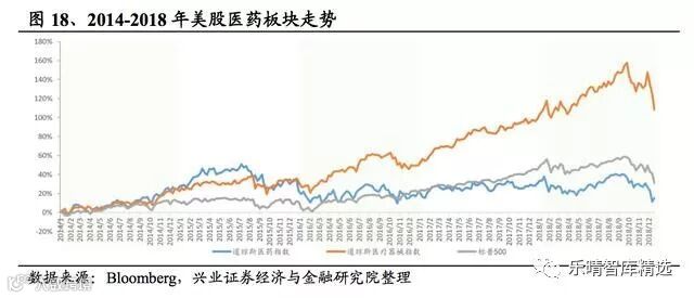 观察美股过去几年医疗器械板块和医药板块的走势,以2014年初为起点,道琼斯医疗器械指数相对涨幅约108%,而道琼斯医药指数涨幅仅有31%。