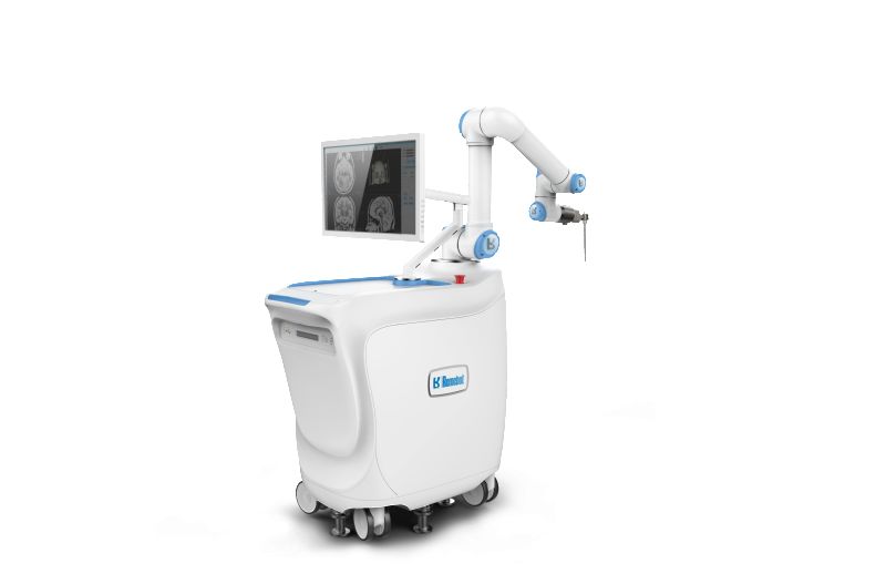 第一款在国内成功应用于临床、第一款在国内实现远程手术、第一款获得 CFDA 认证的纯自主研发神经外科手术机器人。目前,已经成功开展包含颅内活检、DBS、血肿抽吸、核团毁损、SEEG、导航等各类神经外科术式,其精准性、简易性、有效性及微创性获得权威专家认可。 高精度三目视觉定位装置,高速空间自动注册算法多自由度六轴机械臂自动定位,算法优化定位精度多功能手术操作平台,可搭配各类定制化手术器械。