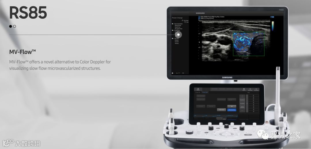 在几年前,超声波无法对小型慢流血管中的血流进行成像,但现在有少数供应商提供具有此功能的系统。该特征提供了另外一种检查病变以指示癌症或炎症的方法。其中一个是佳能Aplio 900 CV系统,它可以显示毛细血管中的血流量。日立的Arietta 65中程系统提供了一种可视化小血管的功能,可以更好地观察肾脏等器官的灌注情况。三星RS85还提供MV-Flow可视化慢流微血管结构。