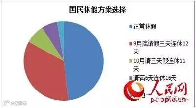 今年中秋国庆,网上出现不少拼假方案:请9月28、29、30三天假期的,连休12天;请10月8、9、10三天的假期的,连休11天;有条件请满6天的人更将享有长达16天的“史上最长假期”。